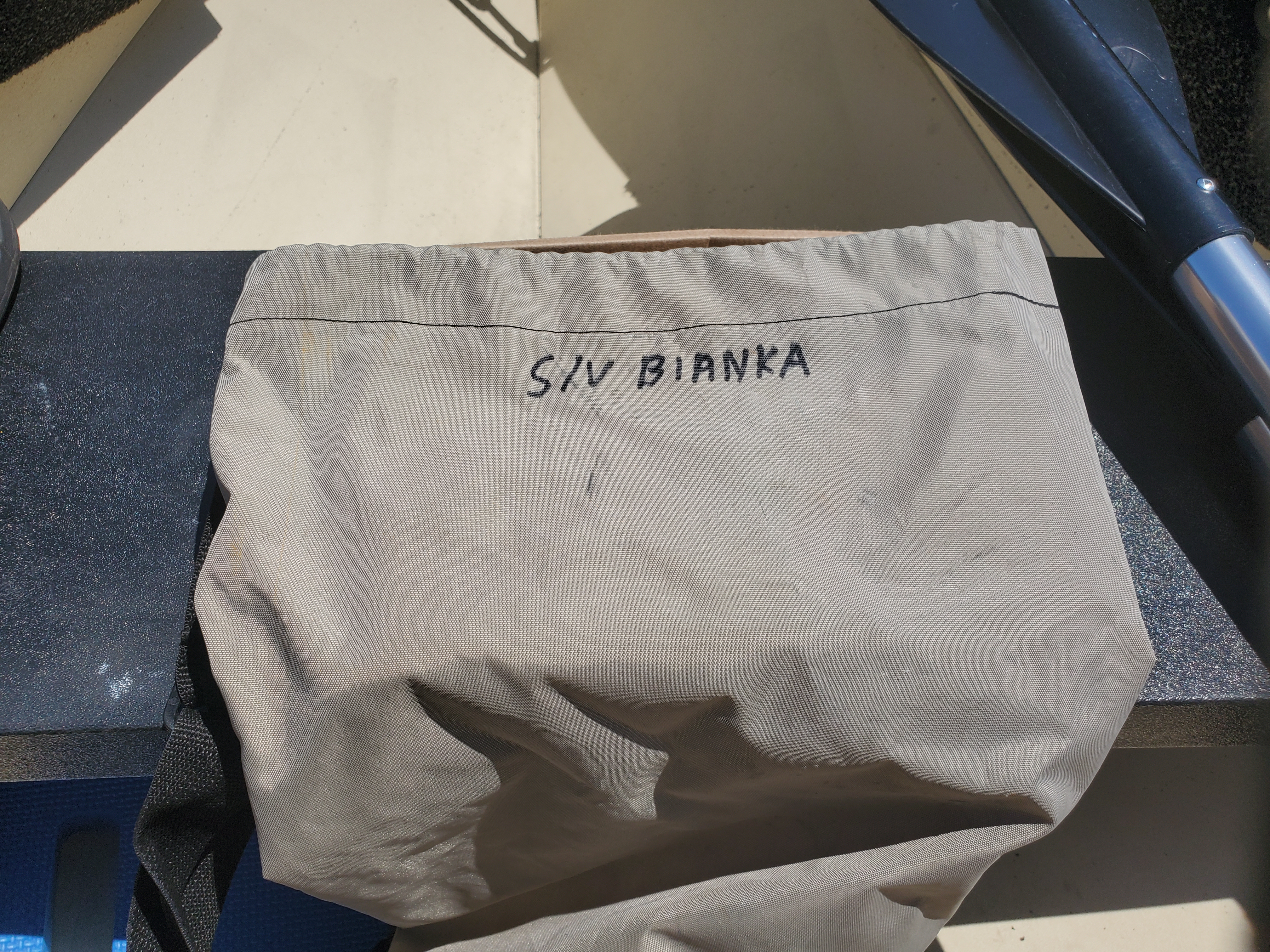 if the Oars should happen to leave the dingy again since they float it makes sense to mark them with BIANKA's name in case any one finds them floating around the harbor. There is a better chance they will find there way back to the boat.